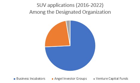 Among the Designated Organizations, Business Incubators emerged as the primary choice for applicants, receiving a substantial number of Start-up Visa applications (4,941 cases submitted). This accounted for over 70% of the total submissions during the seven years. Angel Investor Networks ranked second with 1,536 applications, while Venture Capital Funds received the fewest applications (179 cases submitted).